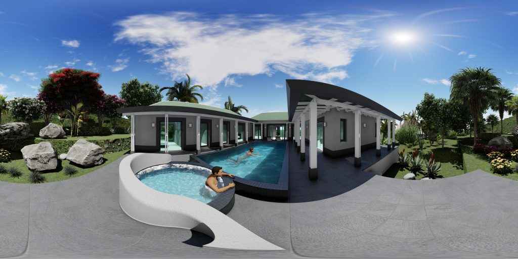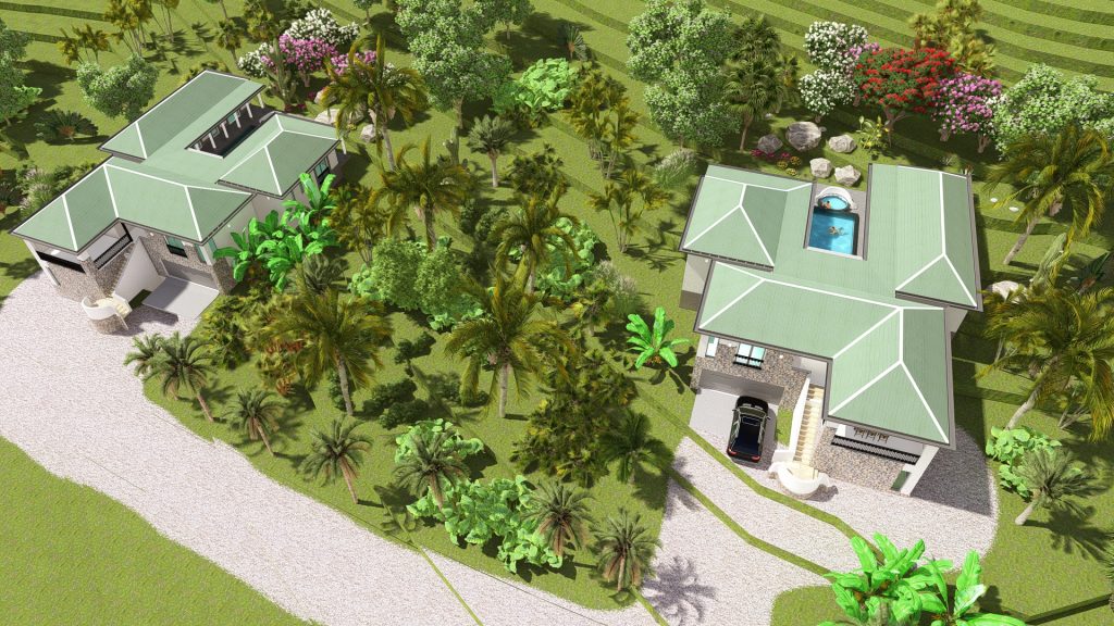 The site sits at a lower elevation, without ocean views, and offers limited privacy for conventional ‘’sint maarten style’’ outdoor pool arrangements. In response, the design reinterprets the typical villa layout by positioning the pool within an elevated inner courtyard. This unconventional approach transforms a constraint into a defining feature, creating a secluded, serene patio that offers an exceptional sense of tranquility.