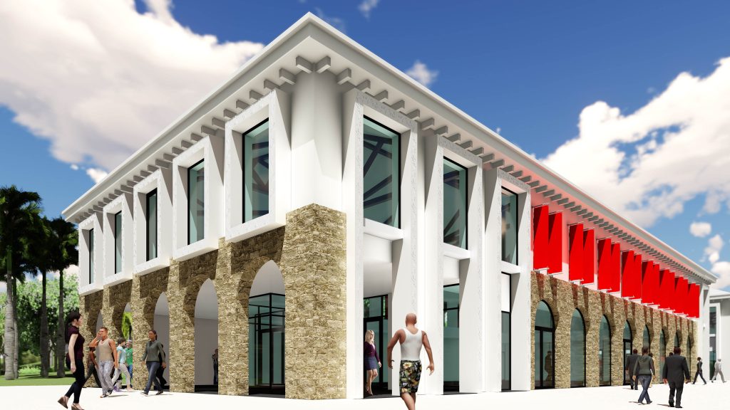 Several early design proposals envisioned a themed village composed of Dutch-style buildings and windmills, combined with so-called “Parisian” architecture. These concepts, however, risked creating a contrived, theme-park-like experience, one that cruise passengers were not seeking. And, traditional Dutch, or you could say Northwest European, architecture is fundamentally unsuited to the Caribbean climate.