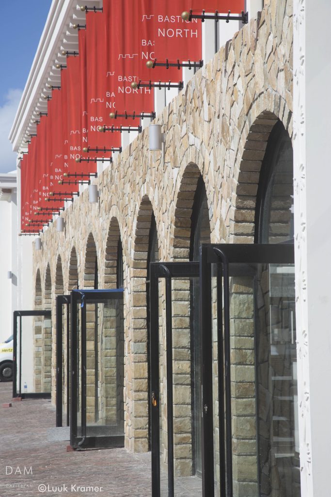 The name The Bastions carries deliberate military connotations. Coincidentally, just as the buildings were nearing completion, Hurricane Irma struck Sint Maarten in 2017, devastating much of the island. The Bastions remained structurally intact and served as temporary shelter for the first Dutch Marines arriving after the hurricane, who were stationed there for nearly a week. In this moment, the buildings briefly fulfilled an original, unintended role as a military refuge before being converted into retail spaces.