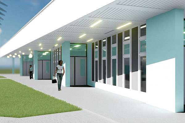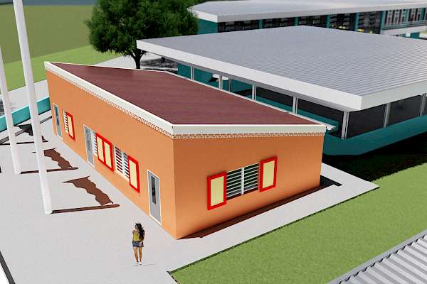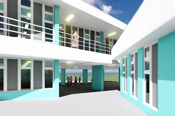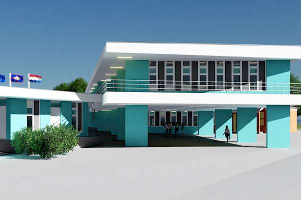 Final design for renovation and extension high school campus on Sint Eustatius. It is a 1980’s unique architectural structure that is divined by diagonals and these sightlines formed the base for the design of the extension. Roof structures with large cantilevers, provide a strong indoor-outdoor connection. The campus has been designed on the winds and geographical location, the new double layered extension of the campus is designed ‘’disaster proof’’ taking notice earth quakes and cat 5+ storms.