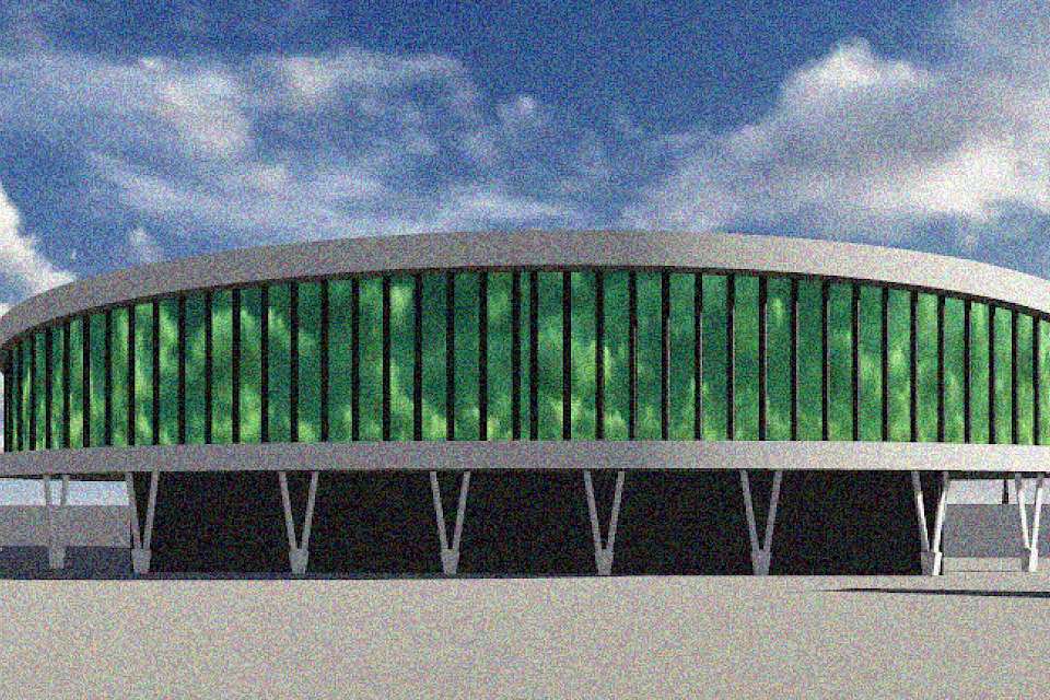 — Inside-outside connection cantilever roofs, diagonals and sight lines